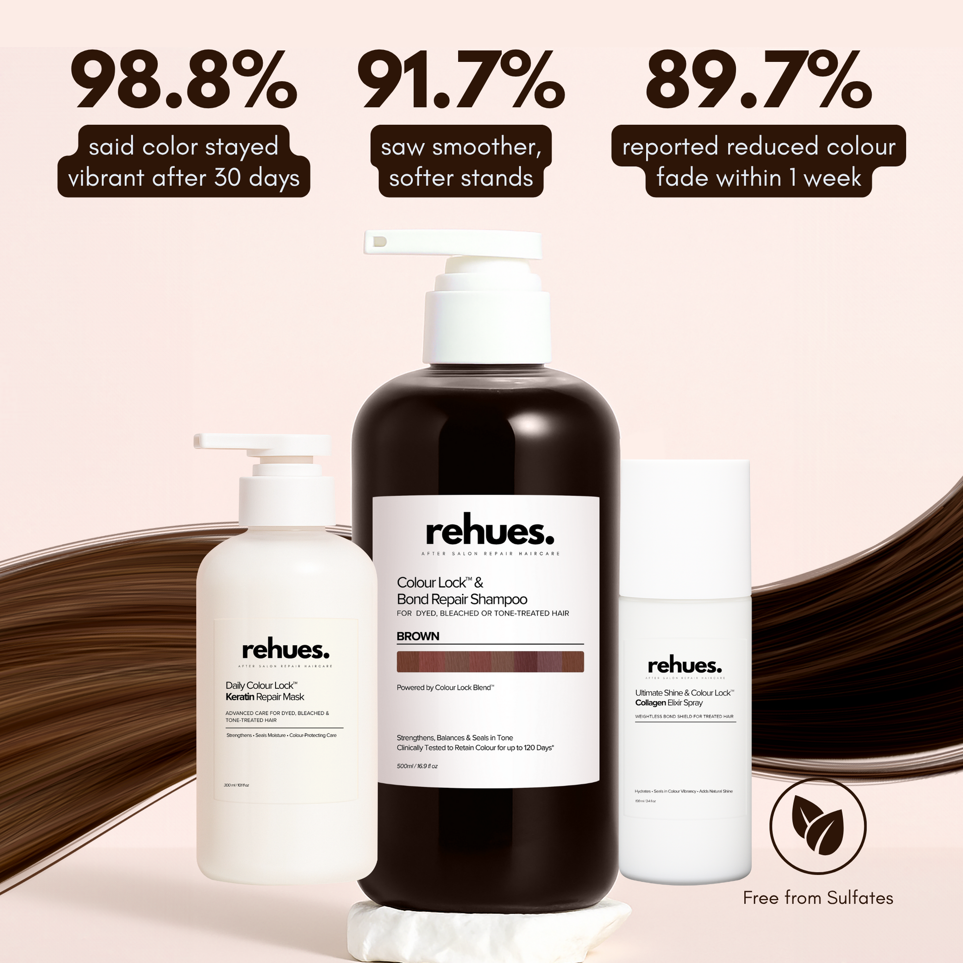 📌 In rare cases, extreme light/porous hair may reflect cooler or ashy tones — this is normal and varies by hair condition. Results may vary depending on hair thickness and tone by individuals. For best results, pair with Rehues Mask & Elixir.